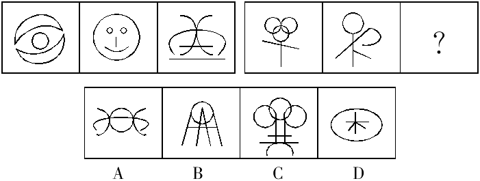 【真题1】从所给四个选项中,选择最合适的一个填入问号处,使之呈现一定的规律性: