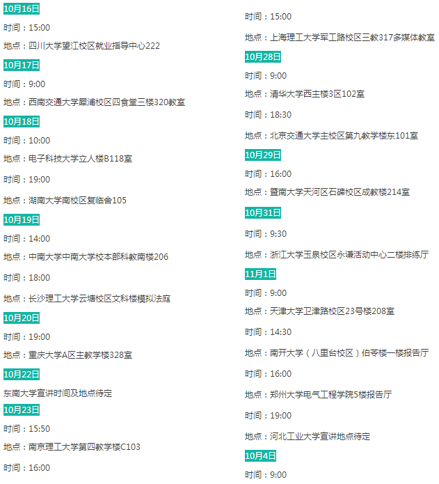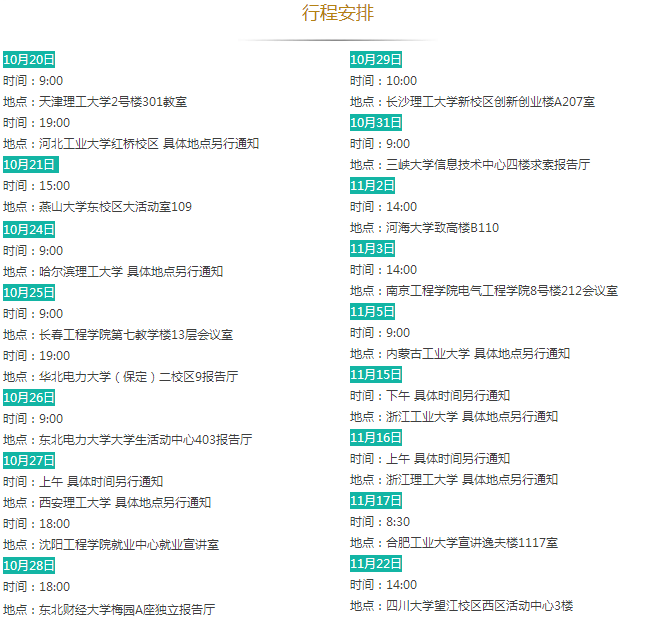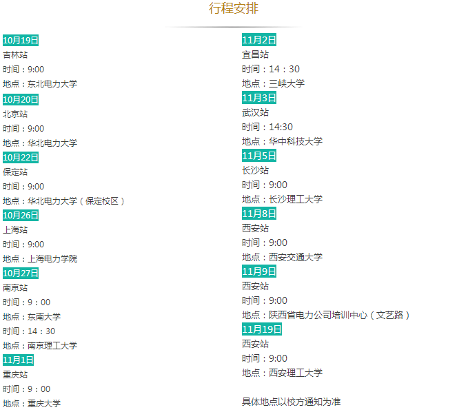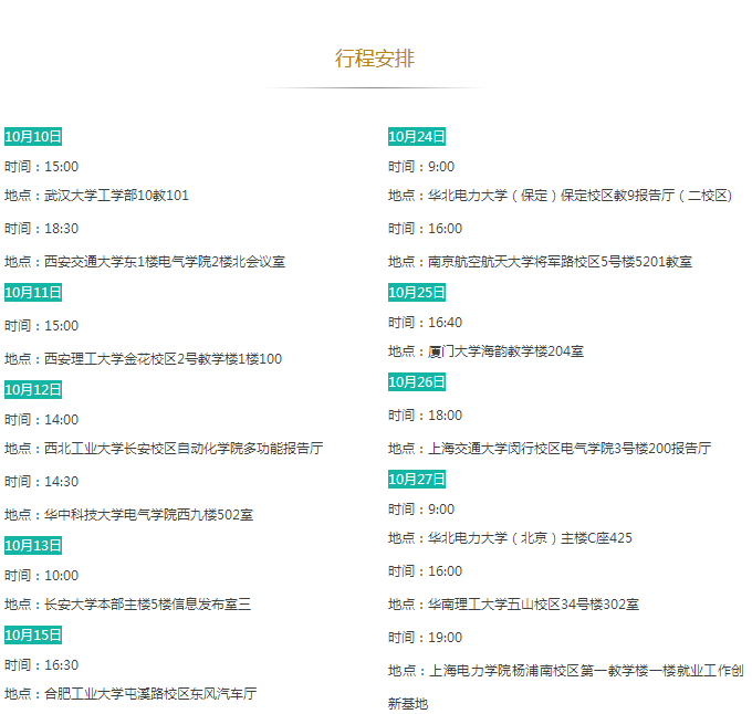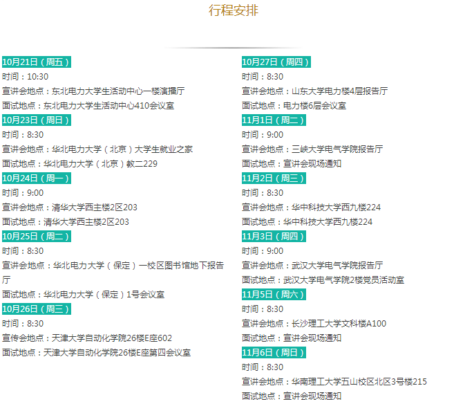 招聘需求:①985院校、华北电力大学、原电力部属老六校电工类专业本科生、研究生;②一般院校电工类专业研究生。行程之外但满足招聘对象要求的毕业生可就近参加。
