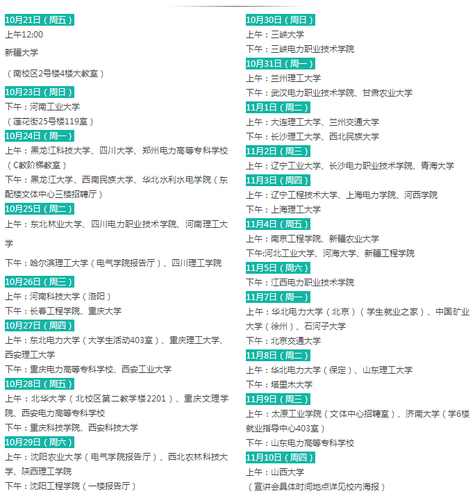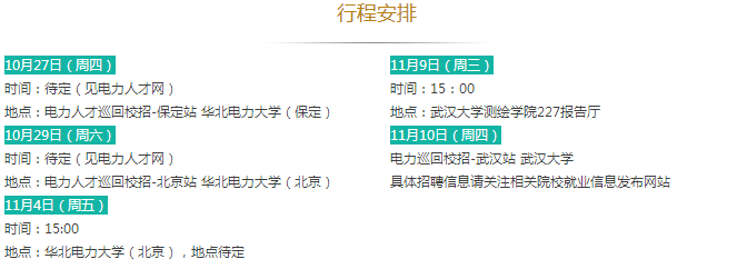 说明:符合招聘条件的其他学校毕业生也可参加以上四所学校的校园招聘(若未参加校园招聘还可参加12月份国网公司统一组织的第一批考试)。