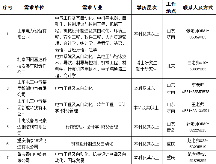 国家电网公司人力资源招聘平台是公司招聘信息发布、应聘者报名的唯一渠道。应聘毕业生请务必于2016年11月20日前登录国家电网公司招聘平台(http://zhaopin.sgcc.com.cn)在线填写个人信息,选择山东电工电气集团有限公司及所属单位,进行网上报名。