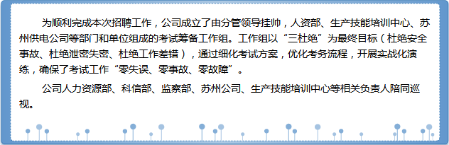 按照国网公司确定的“统一标准、统一命题、统一考试”的原则,本次考试各专业考试试卷均由国网公司统一命题、统一阅卷,考试成绩统一公布。笔试分上下午两场,上午进行电工类(研究生)、计算机类、通信类、其他工学类和财会类专业考试,下午进行电工类(本科生)、管理类和其他类专业考试。