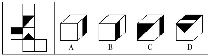 3、左边给定的是纸盒的外表面,右边哪一项能由它折叠而成?