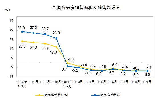 D、2014年9月的商品房销售额同比下降幅度为8.9%