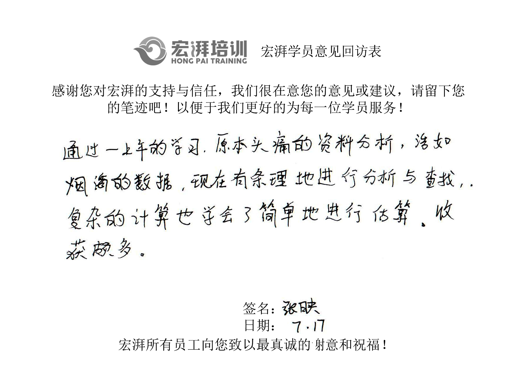宏湃学员心声