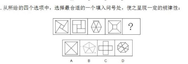 71.【解析】 D。本题考查的是数量类-面,从左往右依次对称面的个数为2、3、4、5,需要找一个6个面的图形,故选择D选项。