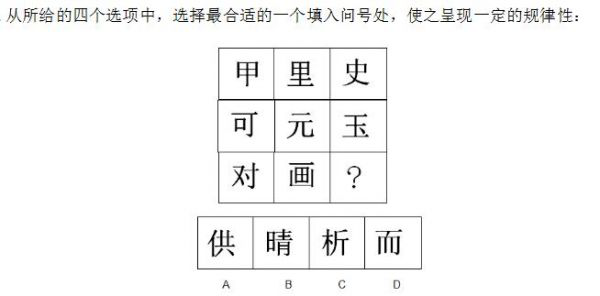 74.【解析】C。本题考查的是属性类-对称轴,依次从左往右对称轴为横,竖,横竖,横竖,竖。应该找一个横的对称轴。且只有横轴对称的图形,所以AD不对。故选择C