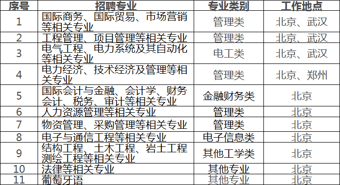 1、国内高校2017年全日制应届毕业生:2017年7月31日前毕业并取得相应的学历、学位证书(可在中国高等教育学历信息网http://www.chsi.com.cn查询),公司本部、设计院北京区须为全日制硕士研究生及以上学历(葡萄牙语为大学本科及以上学历),华中经贸公司、设计院郑州工作区需为大学本科及以上学历(全日制硕士研究生及以上学历者优先录用)。