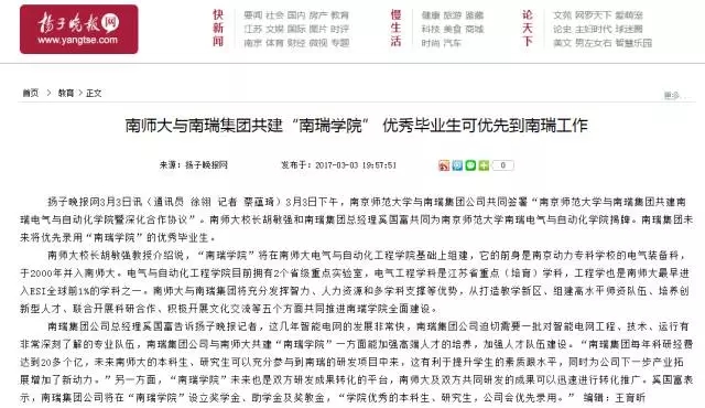 南瑞集团求贤若渴,与南京师范大学共建南瑞电气与自动化学院,开创产学研合作新模式,为企业长远发展源源不断地输送专业人才。
