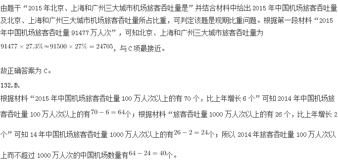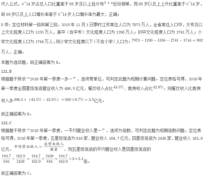 根据“2015年11月1日…高中(含中专)及以上文化程度人口占”可知,判定此题为现期比重问题。定位材料第一段和第三段,2015年11月1日零时江苏常住人口为7973万人,高中(含中专)及以上文化程度人口包含两部分,高中(含中专)文化程度人口为1356万人,大专及以上文化程度人口为1230万人,则高中(含中专)及以上文化程度人口占:,C.项最接近。