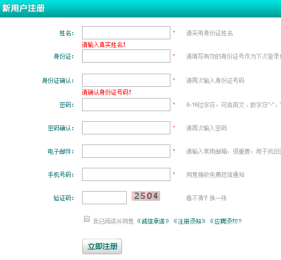 二、进入系统后,未注册的考生需要先点击右上角注册,使用真实姓名及身份证件号进行注册。