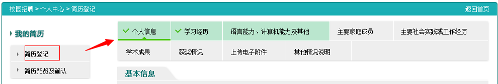 三、注册后,需在“个人中心”中填写简历,填写的内容比较多,防止时间过长提交过程需重新登陆,建议先“下载简历模板”,本地填好信息后再到系统中。