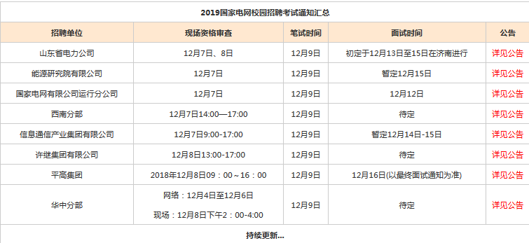 2019国家电网校园招聘将在12月9日进行笔试,12月7日进行现场资格审查。2019国家电网校园招聘考试通知汇总,希望可以帮助大家顺利报考。