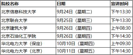 息科技大学、北京联合大学、北京建筑大学、北京石油化工学院。目前已确定行程,即将开展宣讲的高校安排如下。