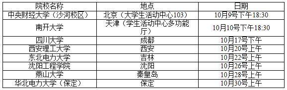 具体宣讲教室、地点请关注校内详细通知,后续还将赴华北电力大学(北京)、中南财经政法大学、西南财经大学等高校开展校园宣讲,行程安排确定后将通过更新发布。