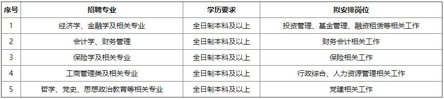 资本控股公司2020年招聘岗位及专业见附件。