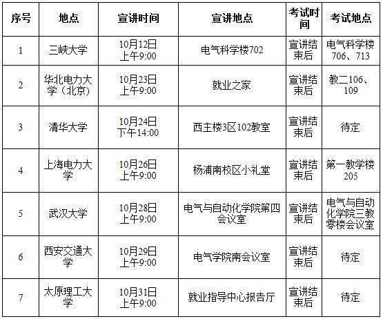 国网山西省电力公司2020年高校毕业生校园招聘行程安排通知