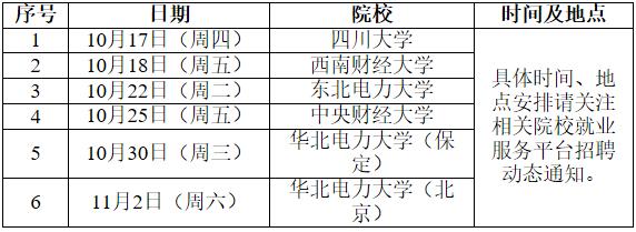 英大长安保险经纪有限公司将于2019年10月赴以下院校开展2020年高校毕业生校园招聘宣传,行程安排如下: