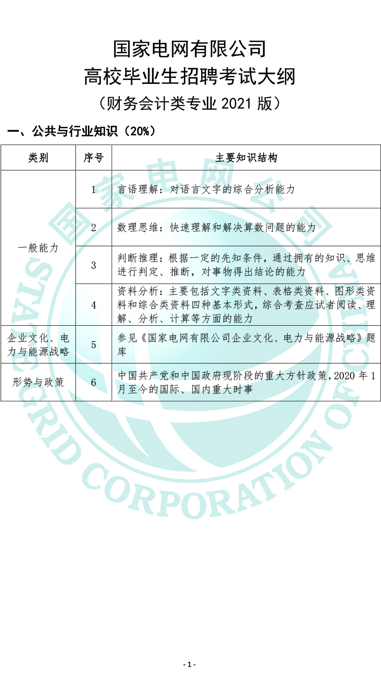 2021国家电网有限公司高校毕业生招聘考试大纲(财务会计类专业)