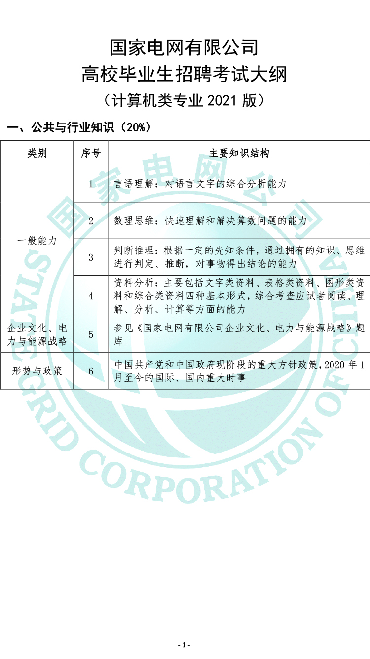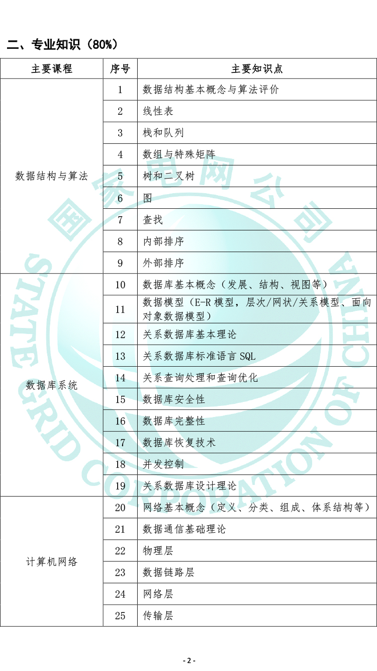 2021国家电网有限公司高校毕业生招聘考试大纲(计算机类专业)