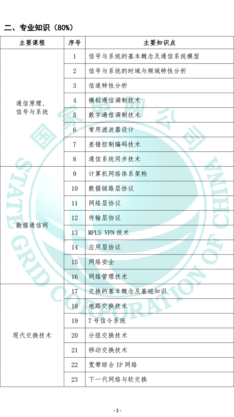2021国家电网有限公司高校毕业生招聘考试大纲(通信类专业)