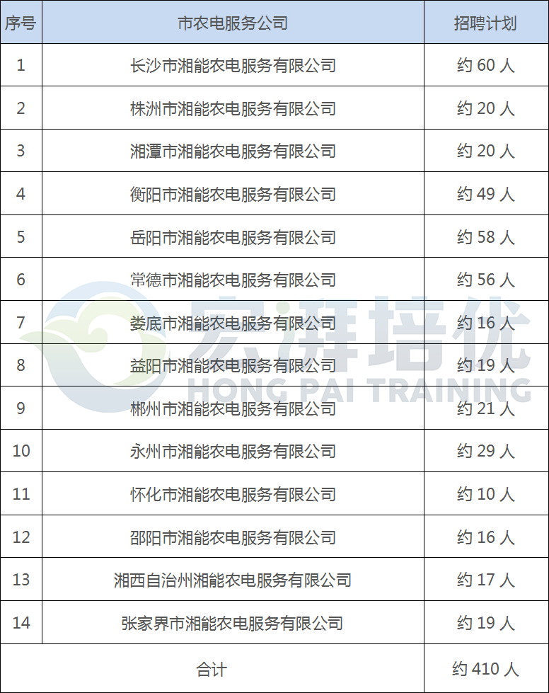 2020年农电服务公司招聘计划汇总表