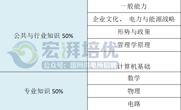 非电工类专业知识占50%,公共与行业知识占50%