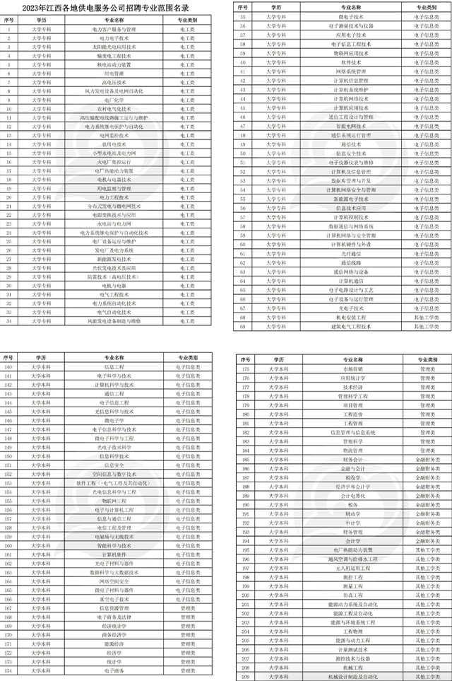 (三)招聘专业以电工类专业为主,兼顾部分非电工类专业。应聘者应具备附件所列学历专业(以主修专业为准)。南昌地区非电工类专业要求全日制本科学历。