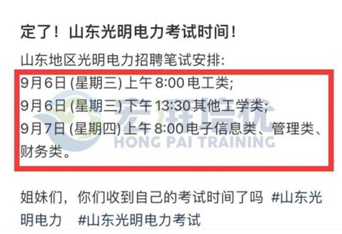 根据私密的消息,今年光明电力考试预计将于9月6号开始。按照往年公告推算,这一可能性较大。去年的公告发布日期是8月9号,报名截止日期是8月11号,考试时间为8月17/18日。从报名截止到笔试时间相隔不到1周。今年的公告发布日期是8月11号,报名截止日期是8月27号,根据过去经验,从报名截止开始计算,大约需要1至2周的时间,因此笔试时间可能差不多。具体是否为9月6号仍需等待确认。我们将继续关注并拭目以待!