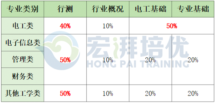 电工类专业笔试主要考查综合能力和专业能力两部分,各专业类别占比如上。