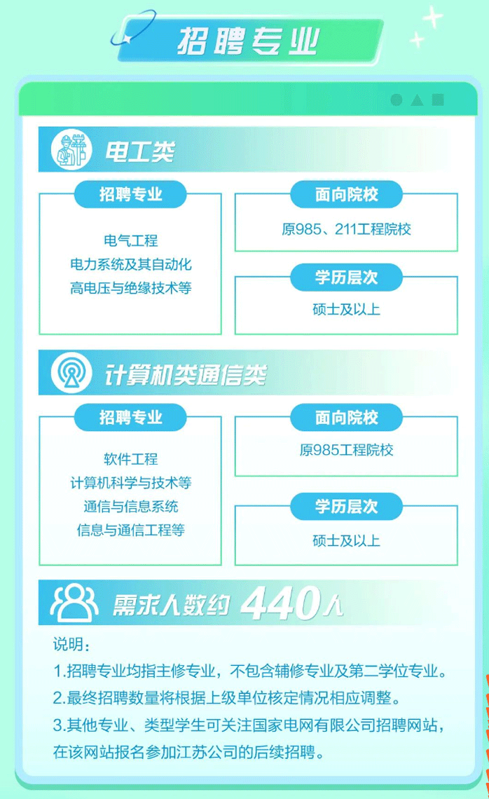 2024届江苏电网校招提前批公告已出,相较于其他省份来说,对于学校的要求较高,一般本硕均电的双9双211稳定通过,本电力院校硕2以上也是比较稳定的。